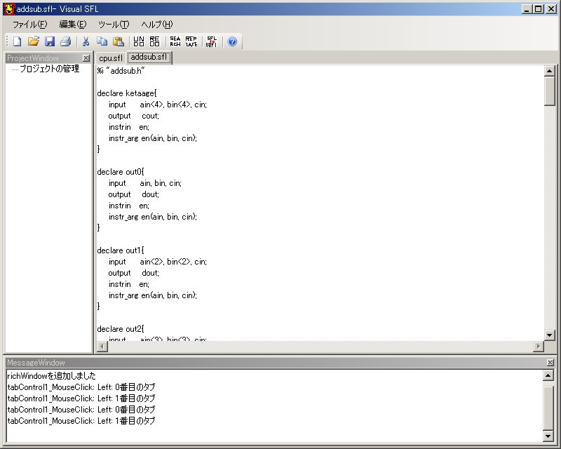今日はタブにどうやってエディットボックスをくっつけるかとか,MDIプログラムの作り方なんかを