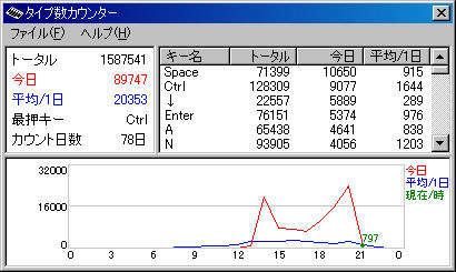 おまけ.今日のタイピング数.といっても今日はWordとかTexとか書いてたからいつもより多めですが.