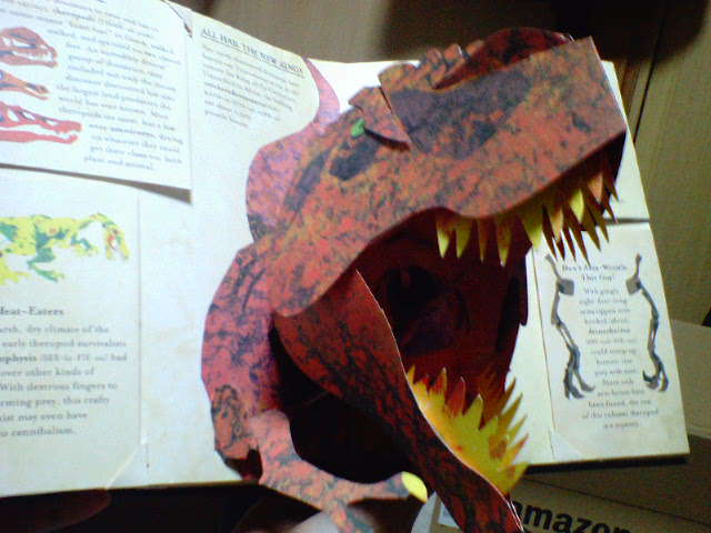 ↑の画像は,恐竜が飛び出しているページです.絵本と言いながらも,買ったのは英語版なので